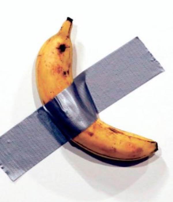On the art side, the most talked about work of the week was titled “Comedian” – a spotty banana ducttaped to a wall by artist Maurizio Cattelan. Attention to it escalated Saturday when Georgia artist David Datuna peeled the art from the wall and, as hundreds of stunned onlookers watched, ate it, calling his action “art performance.”