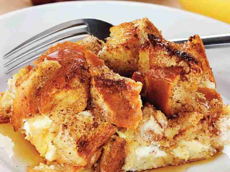 5. Preheat the oven to 425°F. Bake the French toast, uncovered, until puffed and golden, for 30 to 35 minutes. Let it sit for 5 minutes to firm up a bit. Cut into squares and serve with your choice of maple syrup, fresh fruit and/or confectioners’ sugar.