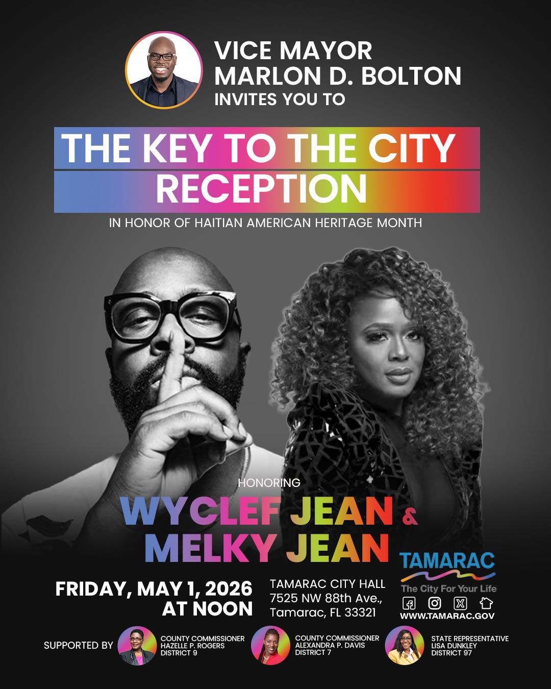 Tamarac to honor Haitian-born siblings Wyclef and Melky Jean during Haitian Heritage Month