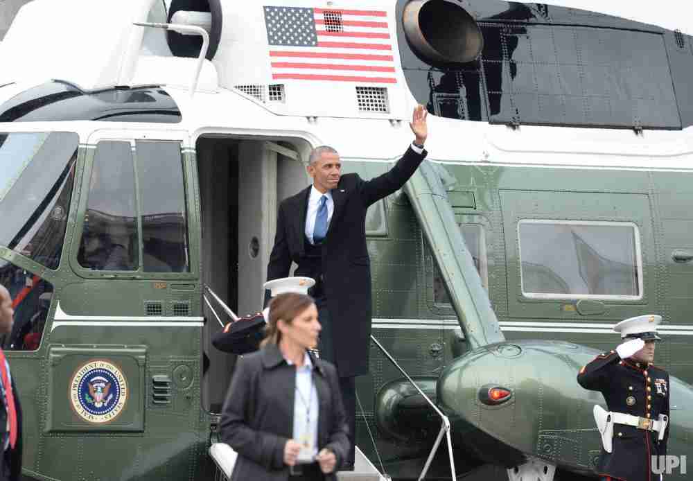 Former President Barack Obama gives a final wave before getting aboard a helicopter after Donald Trump’s Inauguration. Photo courtesy of upi.com.