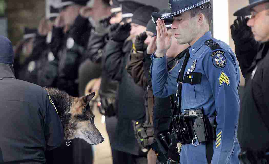 Dozens of officers and firefighters turned out this month to pay their respects to Sultan, a 13-year-old German shepherd who sniffed out drugs and bad guys with the Yarmouth Police Department.