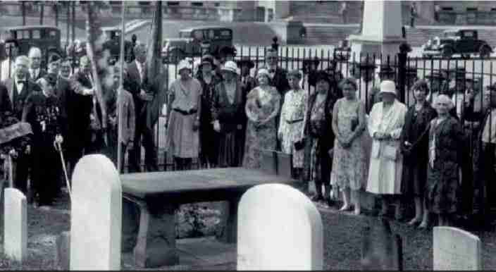 Members of the Bergen County Historical Society laying a wreath on General Poor’s grave in the early twentieth century.