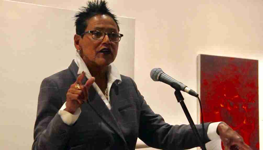 (Pictured below: Elaine Brown, former chair of the Black Panther Party, talks about ‘Revolution or Reform’ during a fundraiser for the Dream Defenders on Wednesday, April 12 in Opa-Locka. Photo courtesy of Anne-Marie Rene for Dream Defenders.)