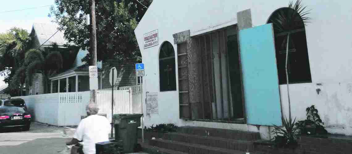 The modest concrete church at 312 Olivia St. remains as it was when work was halted in mid-stride in late 2012, so parishioners continue to meet elsewhere to worship. Church members first held services in the Frederick Douglas Gymnasium in Bahama Village but now worship at the Roosevelt Sands Center at 105 Olivia St.