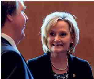 Sen. Cindy Hyde-Smith appeared with Gov. Phil Bryant on Monday at a news conference at the Mississippi Republican Party headquarters, where she accepted an endorsement from the National Right to Life Committee.