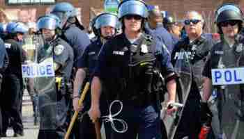 Baltimore police prepare to engage protestors.