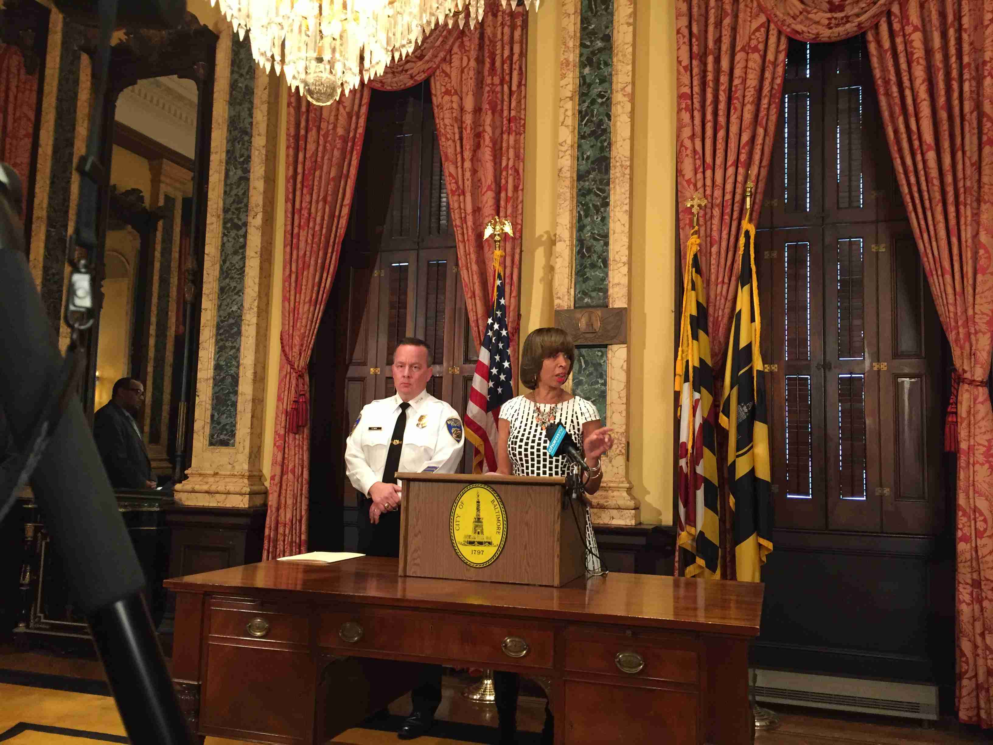 Baltimore Mayor Catherine Pugh and Police Commissioner Kevin Davis at a news conference.