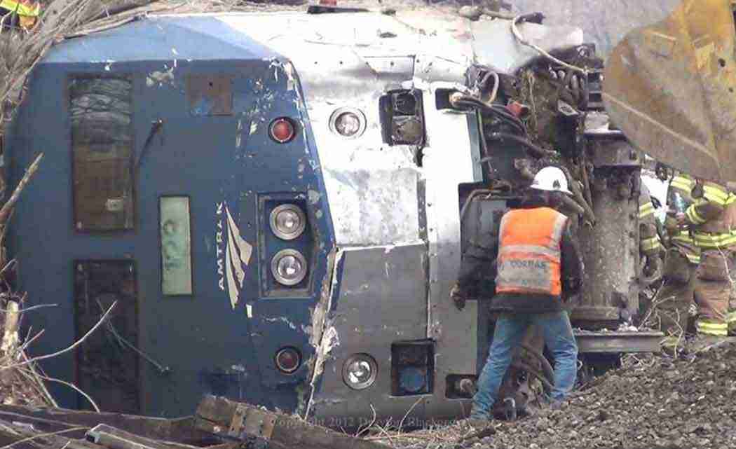 Cranes and heavy equipment are working to right the overturned cars from an Amtrak train that crashed in Philadelphia, killing at least seven people.