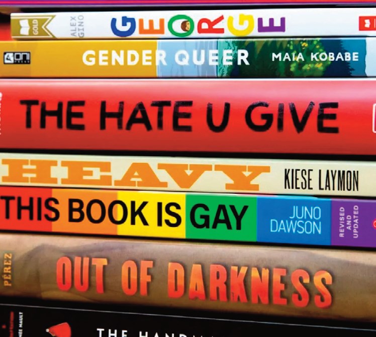 A stack of controversial books subject to attempts to remove them from school libraries. PHOTO COURTESY OF GOVERNING.COM