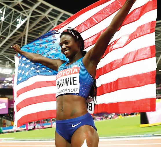 At the 2016 Rio Olympics, Bowie won silver in the 100 and bronze in the 200. She then ran the anchor leg on a 4×100 team with Tianna Bartoletta, Allyson Felix and English Gardner to take gold.