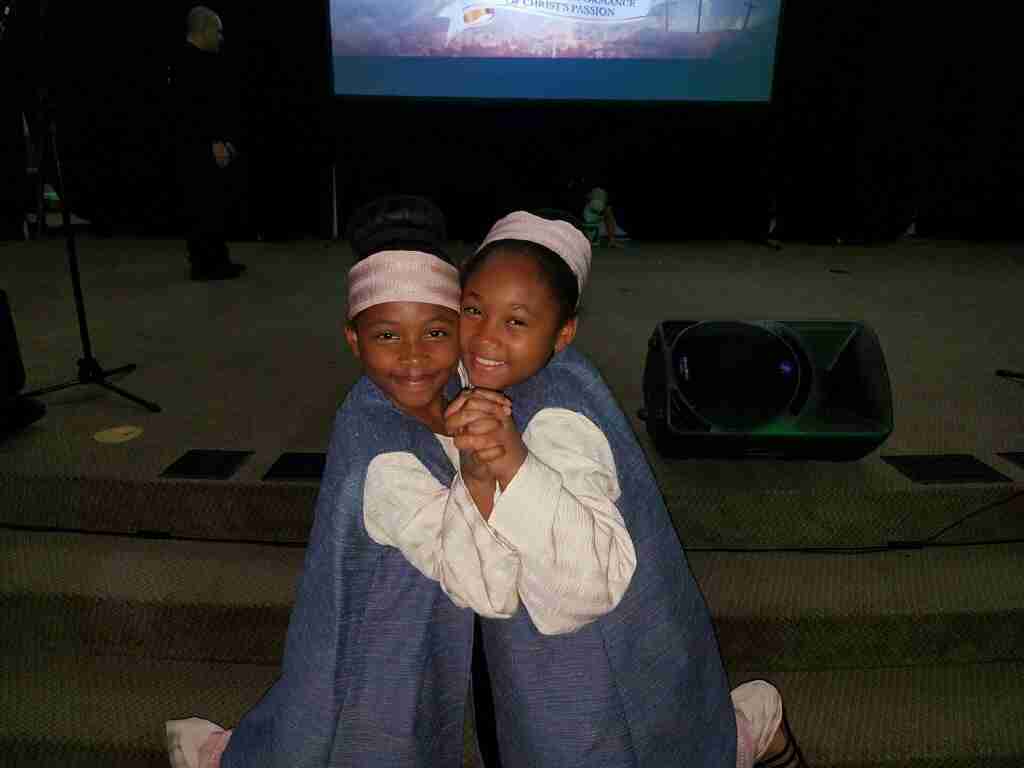 Amaiya, (R-L) 10, and Arielle Francis, 11, are pictured last Sunday after the production.