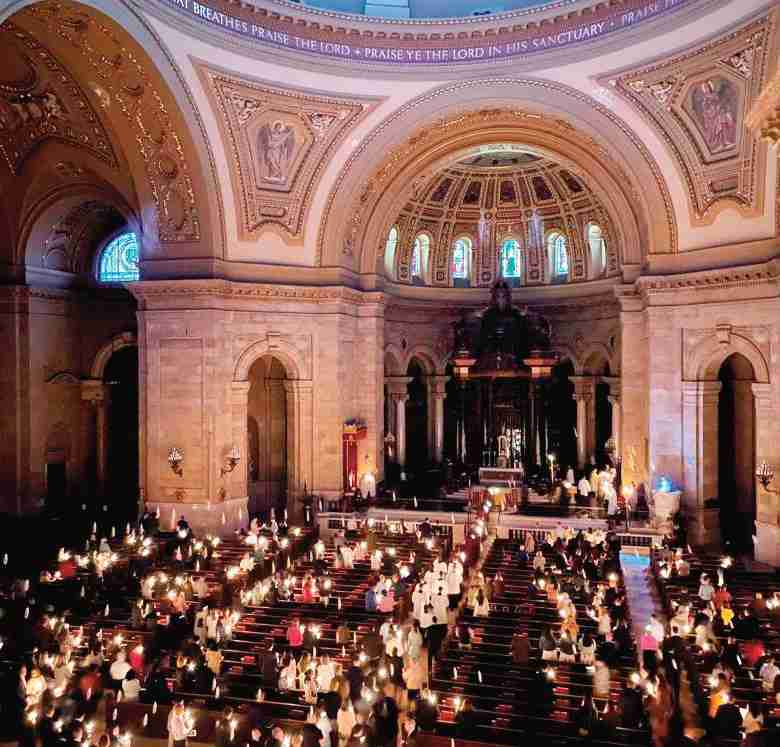 “The gift of being in the same physical space for the first time in three years is so grounding and beautiful,” said Miriam Samuelson-Roberts, the pastor. “We do not take it for granted.” Hundreds of people lit candles in the vast Cathedral of St. Paul after Catholic Archbishop Bernard Hebda blessed the fire and lit the Paschal Candle to open the Easter Vigil service late Saturday.
