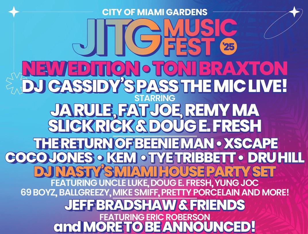JAZZ IN THE GARDENS: The unmissable music festival is celebrating 18 years with a stellar lineup this year featuring performances by New Edition, Toni Braxton, Ms. Lauryn Hill, Doechii, and more on Saturday, March 8 and Sunday, March 9 at the iconic Hard Rock Stadium in Miami Gardens. The event will be a celebration of the diverse spectrum of Black Music, including DJ Cassidy’s Pass the Mic Live!, Beenie Man, Xscape, Coco Jones, Kem, Tye Tribbett, Dru Hill, DJ Nasty’s Miami House Party Set Featuring Uncle Luke, Doug E. Fresh, Mike Smiff, Pretty Procelain, 69 Boyz, Yung Joc, And More, Jeff Bradshaw & friends featuring a special performance by Eric Roberson, with more to be announced. Tickets range from $250 for a 2-day general admission to $1,500.00 for a 2-day Titanium pass and are on sale now at JazzintheGardens.com.