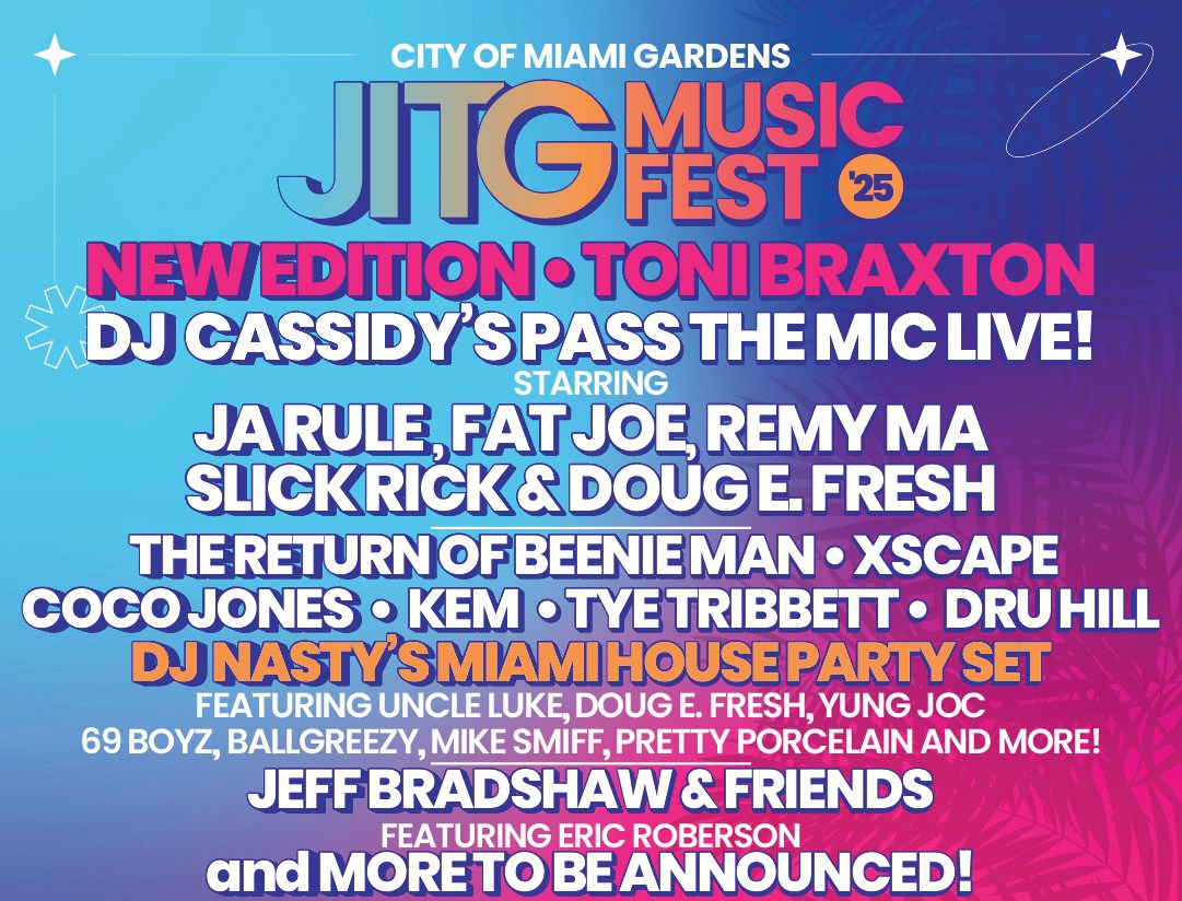 JAZZ IN THE GARDENS: The unmissable music festival is celebrating 18 years with a stellar lineup this year featuring performances by New Edition, Toni Braxton, Ms. Lauryn Hill, Doechii, and more on Saturday, March 8 and Sunday, March 9 at the iconic Hard Rock Stadium in Miami Gardens. The event will be a celebration of the diverse spectrum of Black Music, including DJ Cassidy’s Pass the Mic Live!, Beenie Man, Xscape, Coco Jones, Kem, Tye Tribbett, Dru Hill, DJ Nasty’s Miami House Party Set Featuring Uncle Luke, Doug E. Fresh, Mike Smiff, Pretty Procelain, 69 Boyz, Yung Joc, And More, Jeff Bradshaw & friends featuring a special performance by Eric Roberson, with more to be announced. Tickets range from $250 for a 2-day general admission to $1,500.00 for a 2-day Titanium pass and are on sale now at JazzintheGardens.com.