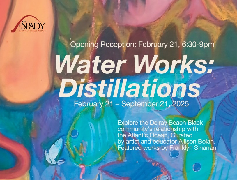 “WATER WORKS: DISTILLATIONS” The newest exhibit of the Spady Cultural Heritage Museum, curated by Allison Bolah and featuring original works by artist Franklyn Sinanan, explores the binding relationship between Black communities and the natural bodies of water that surround them. The exhibit will be on display through Sept. 21, in the main galleries of the museum, 170 NW 5th Ave., Delray Beach. Visit spadymuseum.com.