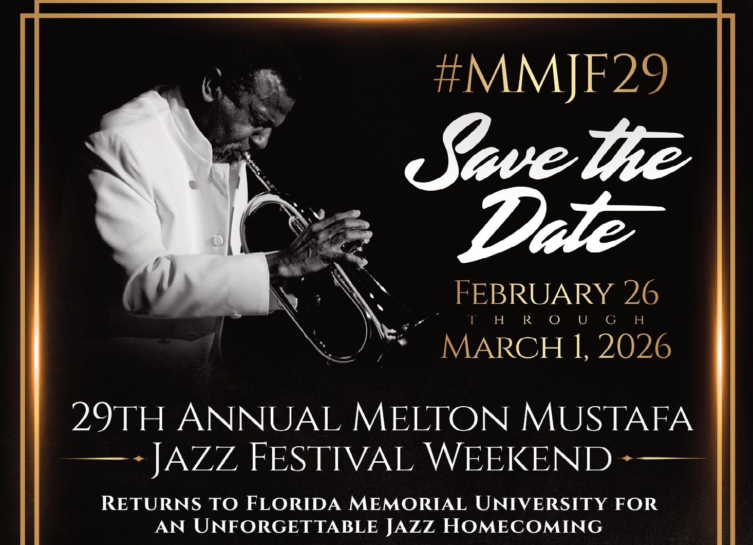 29TH ANNUAL MELTON MUSTAFA JAZZ FESTIVAL WEEKEND: Save the date Feb. 26 through March 1, as #MMJF29 returns to Florida Memorial University, 15800 NW 42nd Ave., Miami Gardens, for an unforgettable jazz homecoming. Visit meltonmustafajazzfestival.com