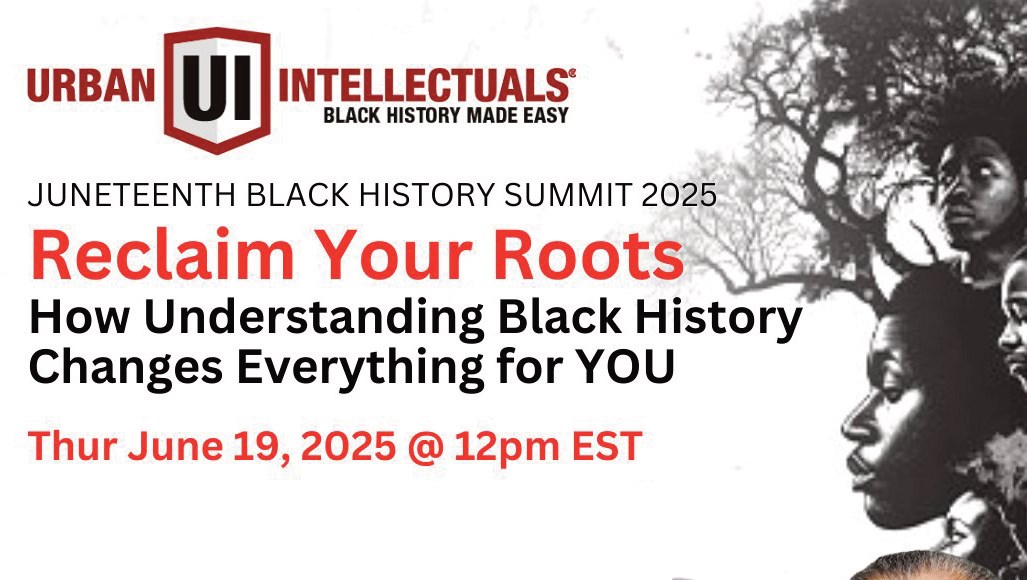 JUNETEENTH BLACK HISTORY ZOOM SUMMIT: Instead of just celebrating Juneteenth this year, let’s empower ourselves with four hours of free online programming hosted on the Zoom platform, Thursday, June 19, noon – 4 p.m. Discover how reconnecting with your roots can empower you, inspire your journey, change everything you thought you knew about Black history and your responsibilities to future generations. Visit store.urbanintellectuals.com/op/jtsummit25