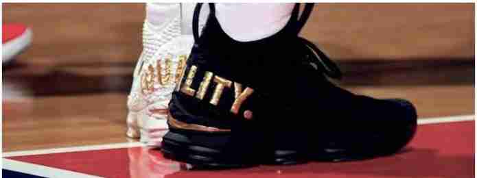 Then, for Cleveland’s first regular-season James donned a pair of black sneakers with the “equality” message. But this was the first time James chose to wear one white game, and one black shoe.